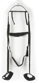Pozycje, które są "technicznie" niemożliwe w łóżku, stają się nową przyjemnością dzięki tej czarnej huśtawce. Konstrukcja nośna i montażowa (trawers) o szerokości 38 cm. Szelki, pętle na ręce i nogi wykonane z odpornego na rozdarcia nylonu, wyściełane i o regulowanej długości. Możliwość obciążenia do 100 kg. W komplecie pejcz (38 cm długości) z 8 paskami i skórzanym uchwytem, maska na oczy i akcesoria montażowe.