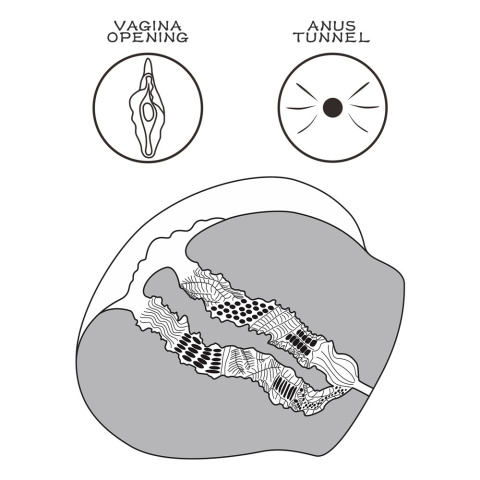 Zaprojektowany tunel pochwy ma gniazda wypustek czekających na pogłaskanie Cię, gdy będziesz się wsuwał głęboko w jej wnętrze. Otwór pośladkowy jest nieco ciaśniejszy i pełen licznych zakrzywień.