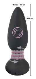 Ten korek analny zapewnia 7 trybów rotacji dla prawidłowego alarmu w jelicie! Sterowany za pomocą pilota, jest idealny do ekscytujących zabaw w parach lub gorących przejażdżek solo. Kilka małych kulek obraca się w wale i tworzy niewyobrażalną stymulację. Podstawa zapobiega zbyt głębokiej penetracji. Wodoodporny dla gorącej zabawy w wannie i pod prysznicem. W zestawie kabel USB do ładowania i bateria do pilota (1 x 23A).