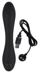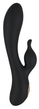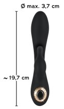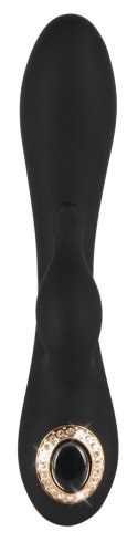 Czarny, dwusilnikowy wibrator króliczek Cleopatra z błyszczącą miedzianą aplikacją w dolnej części wału. Z ergonomicznie zakrzywioną końcówką do stymulacji punktu G i ramieniem do stymulacji łechtaczki. Pozwala na jednoczesną stymulację tych ośrodków przyjemności w 10 trybach wibracji. Prosta i intuicyjna obsługa za pomocą jednego przycisku. Wodoodporny podczas gorących sesji w wannie i pod prysznicem. Możliwość ładowania - w zestawie kabel USB do ładowania.