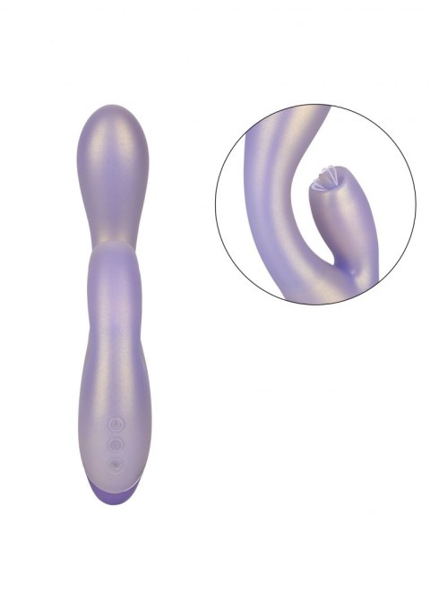 Wspaniały G-Love™ G-Kiss to podwójny stymulujący masażer z wibrującym trzonem i migoczącym językiem przypominającym teaser. Pokochaj siebie w sam raz z elastycznym wałkiem G, 7 niezależnymi funkcjami migotania i 12 niezależnymi funkcjami wibracji. Migocząca końcówka teaser i zmysłowo zakrzywiony trzon są idealne do drażnienia wewnętrznych i zewnętrznych słodkich punktów. Aby uzyskać wyjątkowo gładką powierzchnię i elastyczne ciało, zakrzywiony stymulator i masażer są pokryte połyskującym silikonem. Ten jedwabiście gładki wibrator jest wyposażony w 12 funkcji wibracji i 7 niezależnych funkcji stymulacji migotaniem, stworzonych specjalnie dla Ciebie. Łatwe w obsłudze przyciski sterujące pozwalają bez wysiłku przeglądać każdą funkcję wibracji, jednocześnie zwiększając lub zmniejszając intensywność funkcji. Niezależnie od tego, czy kąpiesz się z kochankiem, czy oddajesz się gorącej sesji solo, możesz spodziewać się nawet 55 minut wodoodpornych wibracji. Naładuj przyjemność i wróć do gry w zaledwie 2 godziny za pomocą dostarczonego kabla USB. Elastyczny masażer wykonany jest z higienicznie najwyższej jakości silikonu. Ten bezpieczny dla ciała materiał jest bezzapachowy i wolny od ftalanów, aby Twoje najbardziej wrażliwe miejsca były szczęśliwe i zdrowe.