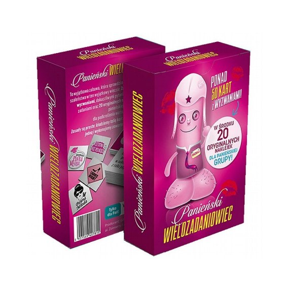 Zestaw zawiera 57 kart z ciekawymi wyzwaniami dokuczliwymi pytaniami i niepowtarzalnymi zadaniami, oraz 20 orginalnych naklejek dla całej grupy panieńskiej.