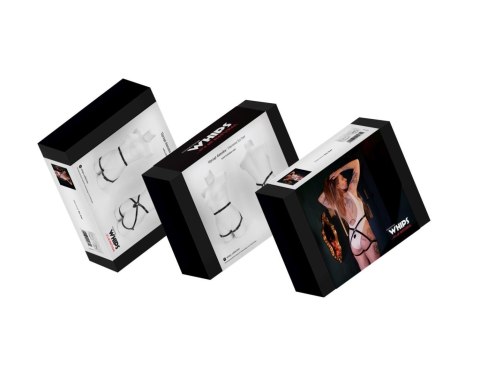 Niezwykle seksowna uprząż urozmaicona metalowymi zdobieniami.