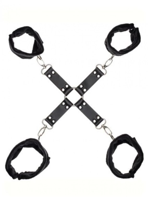 Zestaw mankietów Hogtie z naszej serii fetysz. Hogtie, który wiąże Twoje nadgarstki i kostki od tyłu, pozostawiając cię otwartym na wszelkiego rodzaju perwersyjne zabawy. 4 mankiety na nadgarstki i kostki są wykonane z miękkiego materiału piankowego dla dodatkowego komfortu i można je łatwo regulować za pomocą zapięcia na rzep. Mocowane są do szelek za pomocą metalowych haczyków muszkietowych.