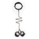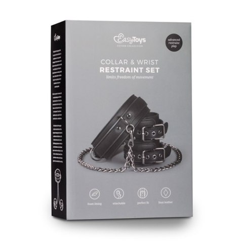 Masz kontrolę, kiedy twój partner ma na sobie ten fantastyczny zestaw niewoli! Składa się z kołnierza na szyję, połączonego z mankietami na nadgarstki, które można łatwo odłączyć od siebie za pomocą klamer. Zabawki są wykonane z wytrzymałej skóry ekologicznej wyłożonej pianką, dzięki czemu są trwałe i wygodne w noszeniu. Kołnierz można regulować w zakresie od 45 do 58 cm, a mankiety można regulować w zakresie od 11 do 28 cm. Łańcuch ma długość 40 cm. Połącz ten specjalny zestaw z innymi zabawkami, takimi jak mankiety na kostki, kneble, zaciski na sutki, aby uzyskać dodatkowe ekscytujące wrażenia.