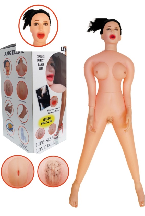Piękna nadmuchiwana lalka miłości z czarującą 3D twarzą z otwartymi miękkimi ustami, naturalnymi włosami i stojącą pozycją, która kusi i wzbudza sensację. Jest ona naturalnych rozmiarów, posiada piękne, duże i jędrne piersi z erekcyjnymi sutkami.