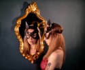 Niezwykle seksowna maska z zmysłowymi uszami. Ozdobiona metalowymi ćwiekami.
