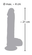 Długość całkowita 21 cm, długość wkładki 15,5 cm, średnica 4 cm. Silikon, PU.