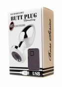 Metalowy korek analny sterowany pilotem.Rechargeable Butt Plug Vibrator USB 10 Functions - Silver
