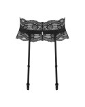Koronkowy, czarny pas do pończoch z kwiatowymi akcentami. Uszyty z przyjemnych w dotyku materiałów, które dbają o wygodę i komfort.