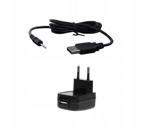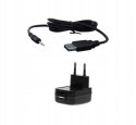 W zestawie znajduje się ładowarka, za jej pomocą ładujemy akumulator urządzenia (z gniazdka sieciowego lub USB).