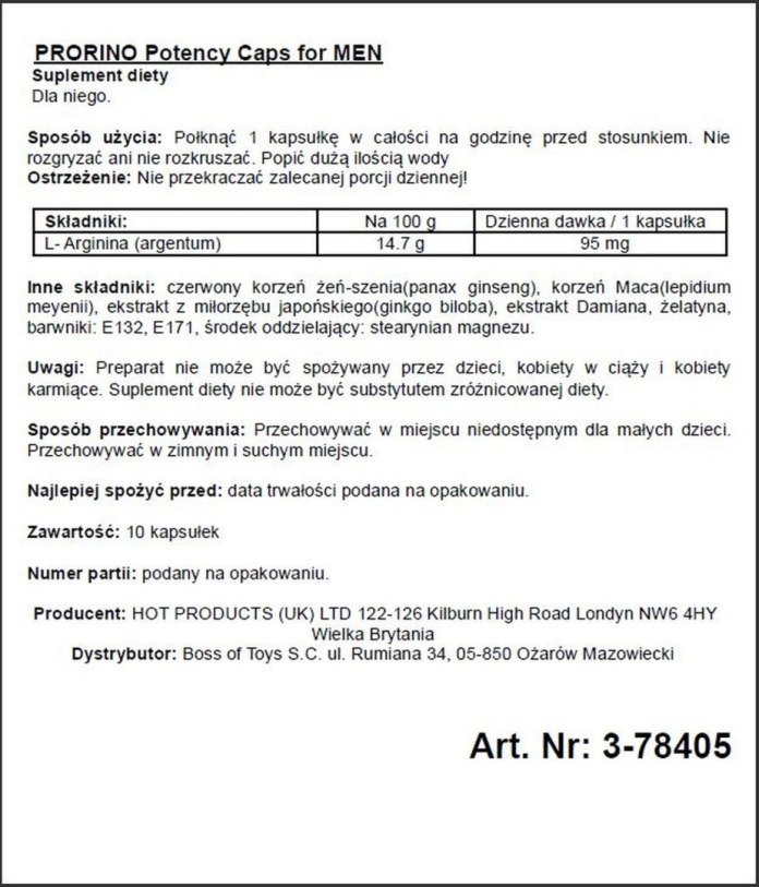 Kapsułki na Potencję PRORINO Men- 10 kaps.