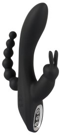 Wibrator ze stymulatorem łechtaczki w kształcie króliczka i stymulatorem anusa w kształcie kulki. 7 trybów wibracji w zakrzywionym wale z końcówką do punktu G i 3 tryby wibracji w stymulatorze łechtaczki można wygodnie kontrolować oddzielnie za pomocą jednego przycisku. Ten wszechstronny rozpieszczacz jest pokryty miękką w dotyku teksturą na całej powierzchni i zapewnia bardzo przyjemne uczucie skóry podczas zabawy i rozpieszczania. Nawet w mokrym środowisku, ponieważ wibrator jest wodoodporny! Możliwość ładowania - kabel USB w zestawie.
