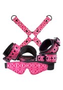 SINFUL BONDAGE KIT PINK jest doskonałym wyborem dla amatorów, którzy chcą wybrać się do niegrzecznego świata BDSM. Zestaw zawiera wszystko co jest potrzebne na noc BDSM-przyjemności. Luksusowe ograniczenia, które zadowolą zarówno zaawansowanych jak i amatorów zabaw. W skład zestawu wchodzą wygodne mankiety z regulowanymi zapięciami na nadgarstki i kostki, oczywiście z możliwością połączenia ich oraz stylowa maska miłości.